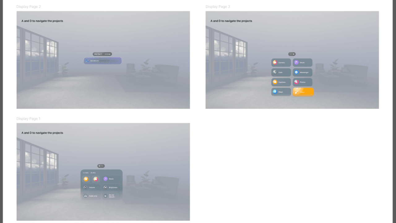 Once establishing a concept, I started off by creating a prototype of the existing Display OS by taking a ton of screenshots. Screenshots turned into Figma Assets, then storyboards, then uploading the assets to Unity to be brought together via microgestures.